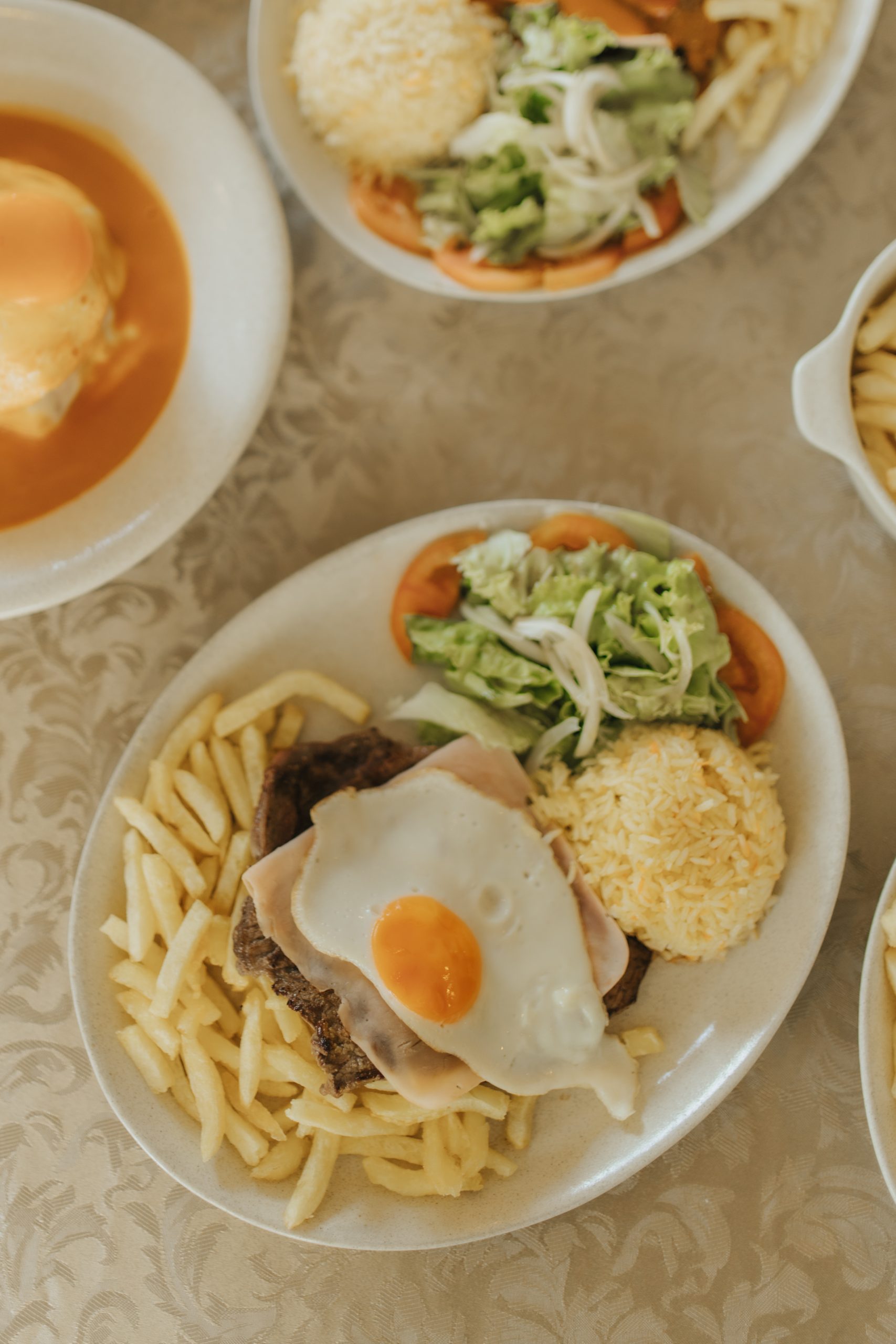 Atlantic cod fillet, chips, salad, tartare, lemon.