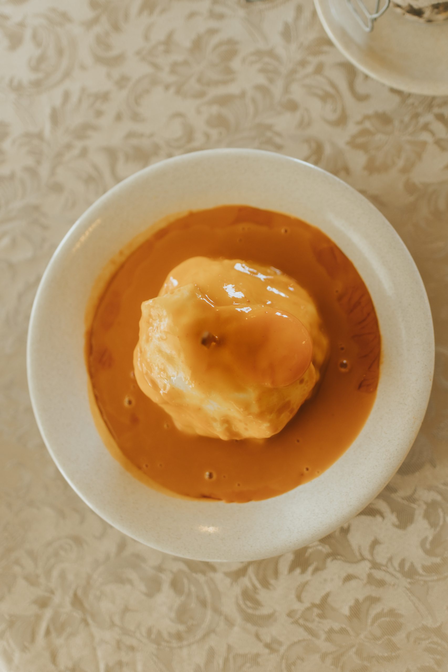Salted caramel custard tart, vanilla ice-cream, almond biscuit.